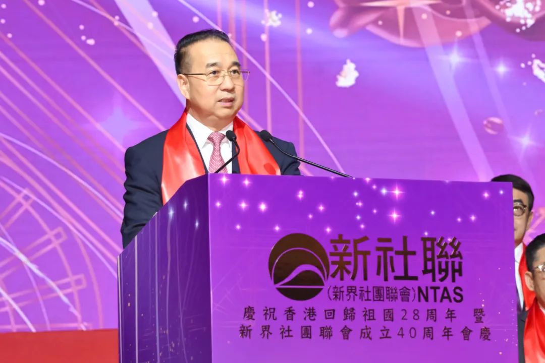 新界社團聯會(新社聯)2025年6月5日在灣仔會展中心隆重舉行「慶祝香港回歸祖國28周年暨新界社團聯會成立40周年會慶」。香港特別行政區行政長官李家超、中央政府駐港聯絡辦副主任劉光源、中央政府駐港維護國家安全公署副署長陳楓、外交部駐港特派員公署署理特派員李永勝等蒞臨主禮,現場逾1200位社會各界嘉賓蒞臨,和新社聯會長陳勇、理事長譚鎮國等同申慶賀。